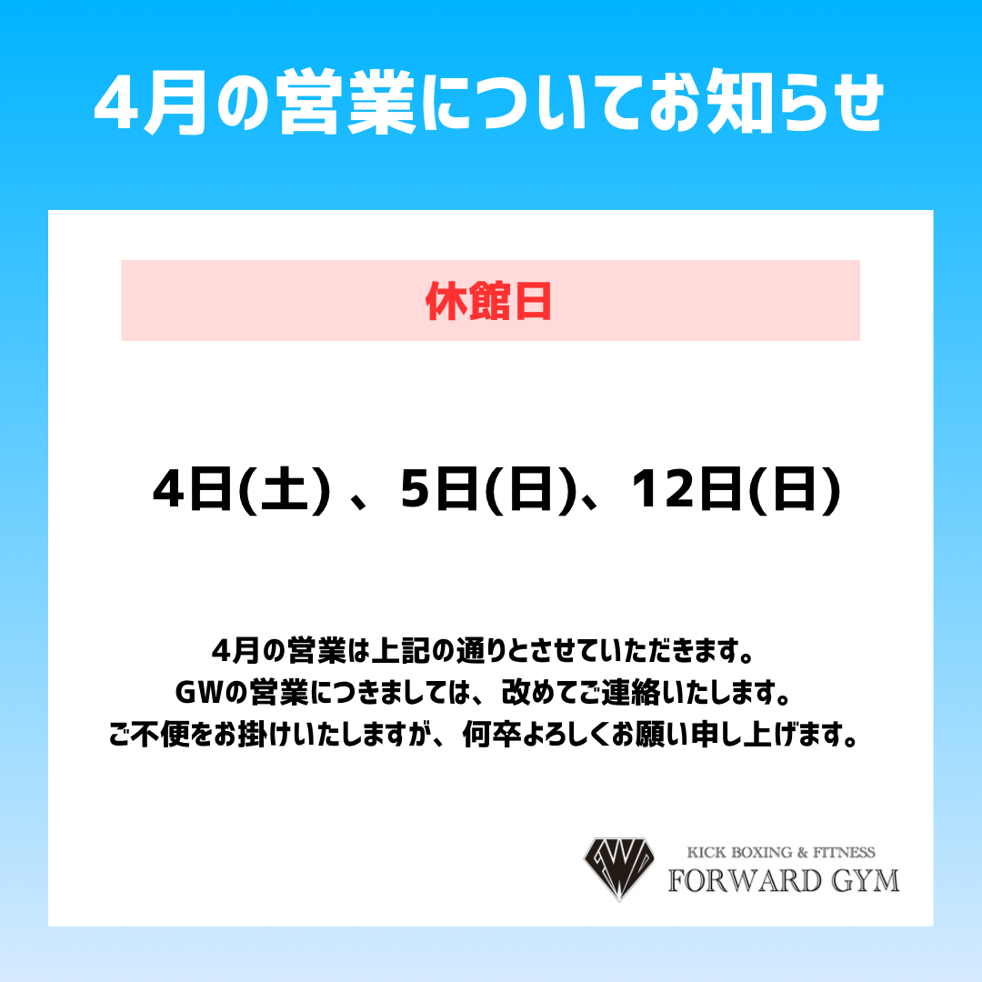 いつもFORWARD GYMをご利用いただきありがとうございます。